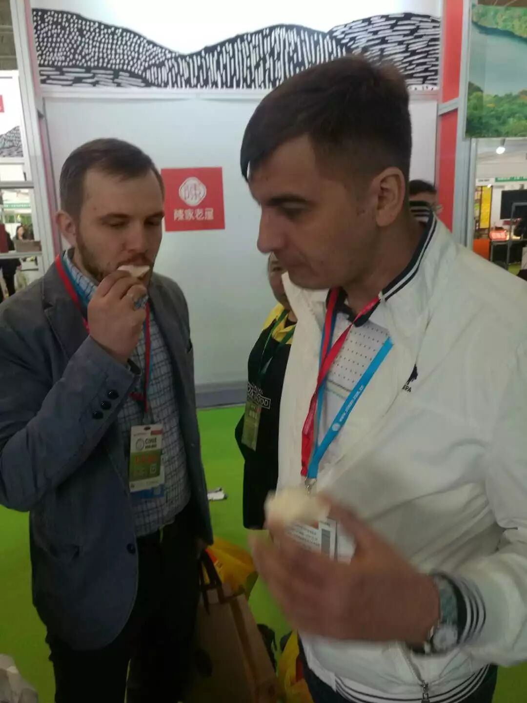 展位前聚集众多前来品尝、咨询的客商